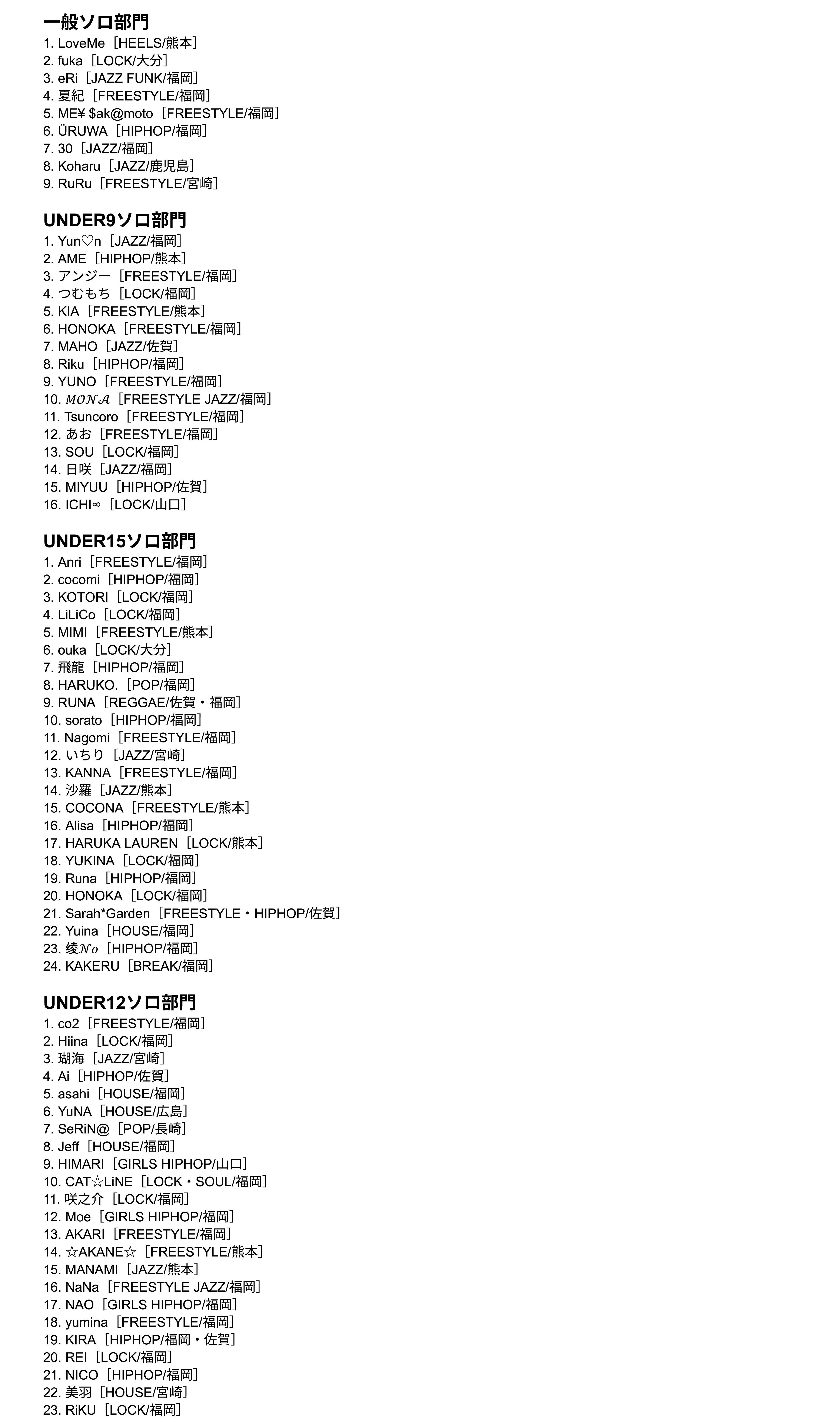 ⑨UNDER15ソロ部門